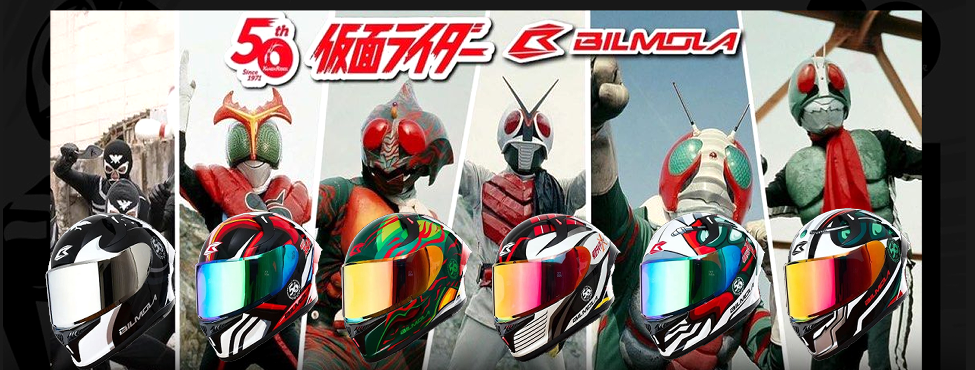 盛大戰役隆重登場!假面騎士與Bilmola比爾莫拉推出安全帽款聯名囉!慶祝《假面騎士》系列50週年,Bilmola比爾莫拉特別聯名《假面騎士》推出了一系列的限量經典造型安全帽。